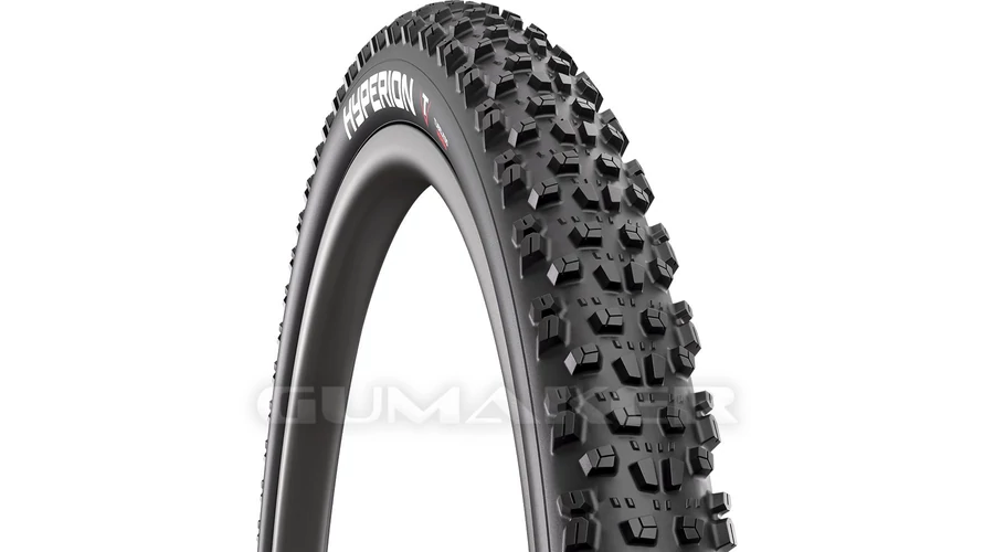 A Hyperion mintázatot a sikeres sárgumi, a Charybdis ihlette. Annak legjobb tulajdonságaiból merítve további előnyöket kínál: kissé mélyebb mintázat a magasabb kapaszkodóképesség érdekében vizes vagy puha felületeken, méretesebb futófelületi bütykök a biztosabb kanyarvételért, három irányú rovátkák a bütykökön a kemény akadályokon való biztosabb haladásért. Mindennek eredményeképpen magasabb teljesítmény és megbízhatóság jellemzi megterhelő körülmények között. Felhasználás: XC, XCM, TrailR13 Hyperion