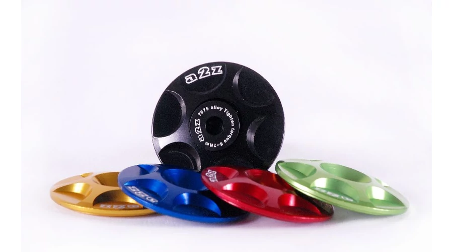 Ultrakönnyű, CNC megmunkált alumínium kormánycsapágy zárókupak, alumínium csavarral, többféle színben.