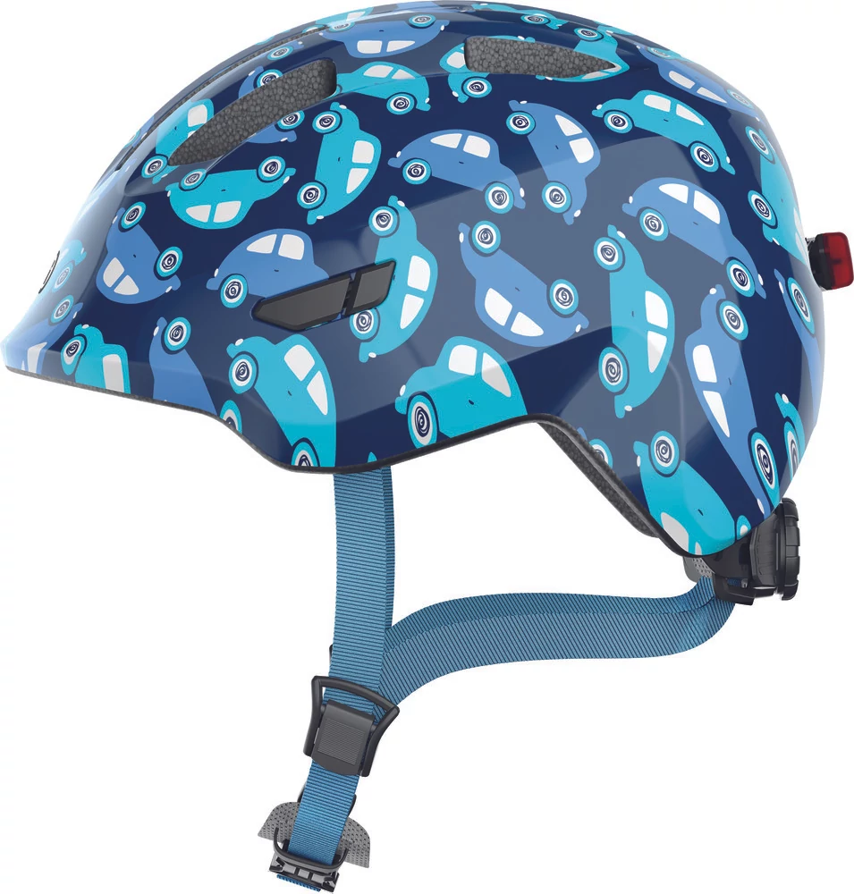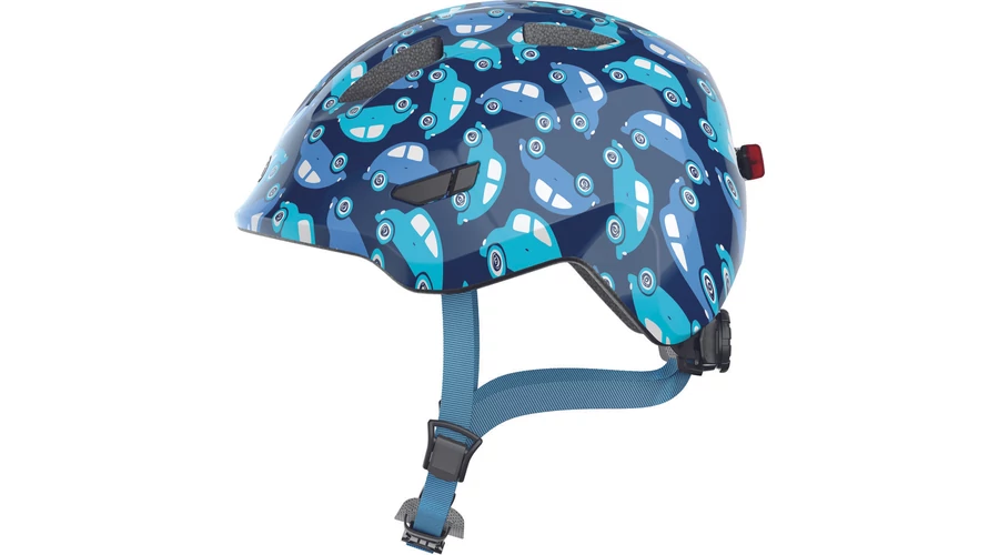 ABUS kerékpáros gyerek sisak Smiley 3.0 LED, In-Mold, blue car, M (50-55 cm)