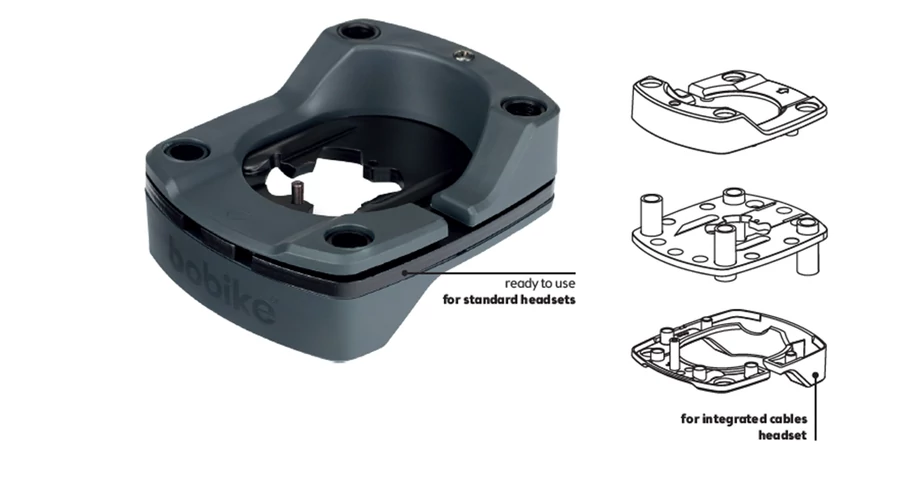 Bobike A-Head adapter Plus, integrált kábelvezetésű kormánycsapágyakkal is - Mini első gyerekülésekhez és szélvédőkhöz, fekete