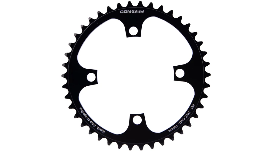 CONTEC "B-SP" lánctányér az 1. és 3. generációs Bosch hajtásokhoz. Alumínium, 4 karos 104 mm-es lyukkörrel rendelkezik. 36, 38, 40, 42 és 44 fogú fokozatokban kapható. A CONTEC azt javasolja, hogy az összeszerelést szakkereskedő végezze el.