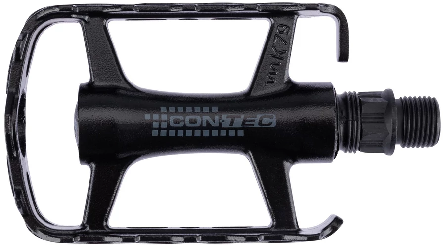 A CONTEC "Blacktop" MTB/trekking pedál ideális azok számára, akik stabil, sokoldalú és könnyű pedált szeretnének MTB, cyclocross vagy túrakerékpárjukhoz. A "Blacktop" CNC alumínium teste nemcsak sportosnak tűnik, hanem nagy torziós merevséggel is rendelkezik, és mindössze 268 g súlyú. A simán futó csapágyak, valamint a pedál csúszásmentes profilja minden helyzetben jó erőátvitelt tesz lehetővé. A sárga prizmák növelik a láthatóságot a sötétben, és ezáltal a biztonságot a forgalomban. A 9/16"-os menet lehetővé teszi a pedálok csavarozását az összes szabvány hajtókarba.