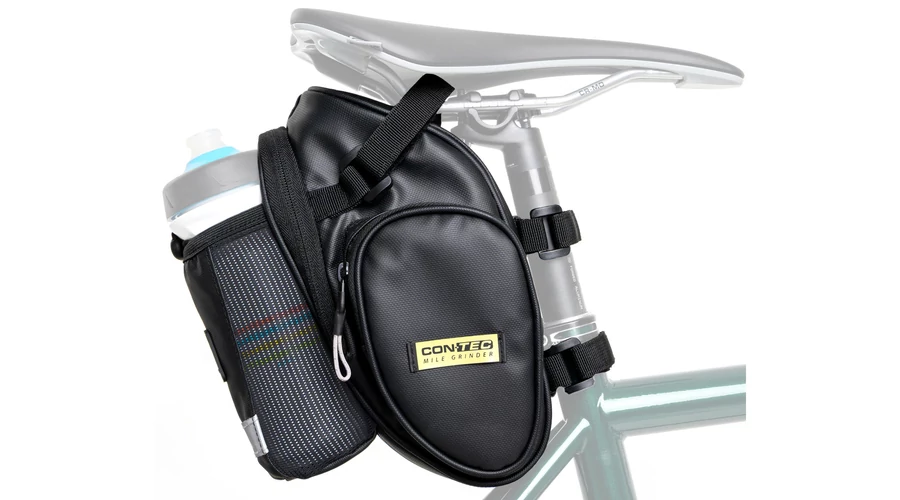 A CONTEC "Mile Grinder Extra" nyeregtáskája egy kicsi, de tágas nyeregtáská, amelyben könnyedén szállíthat szerszámokat, tapaszokat és egy tartalék belsőt. Ezenkívül egy rugalmas háló van rögzítve a háthoz, amelyben akár egy italkulacsot, akár az esőkabátját veheti. A nyeregtáskát egy nagy fő rekeszre és két kis oldalsó rekeszre osztott, ahol például a lakáskulcsot vagy zsebkendőt is tárolhatja. Az esővédővel együtt a táska vízálló. A "Mile Grinder Extra" nyeregtáskátáska tépőzáras hevederekkel rögzíthető a kerékpár üléscsövéhez.
