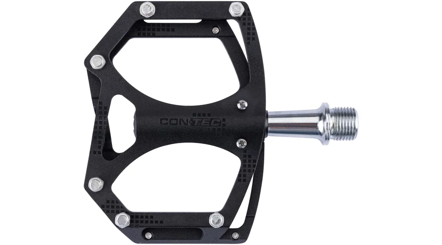 A CONTEC "Rapid" MTB/FREERIDE pedál stabil alumínium testével és alacsony, mindössze 243 g-os súlyával ideális azok számára, akik értékelik az optimális funkcionalitást kerékpáralkatrészeikben. A "Rapid" ergonómiai és stabilitási szempontból is meggyőző: A nagy érintkezési területek cserélhető tüskékkel (R-tüskékkel) vannak ellátva, amelyek szükség szerint kicserélhetők. Ezenkívül a kifejezetten robusztus, CrMo acélból készült, tömített iparicsapágyakon elhelyezett tengely még nagy terhelés esetén is biztosítja a megbízhatóságot és a biztonságot. A tömített iparicsapágyak simán futnak, és tartós védelmet nyújtanak a sár és a víz hatásai ellen. A CONTEC "Rapid" pedál bármilyen hajtókarra felszerelhető a szabvány 9/16"-os menettel.