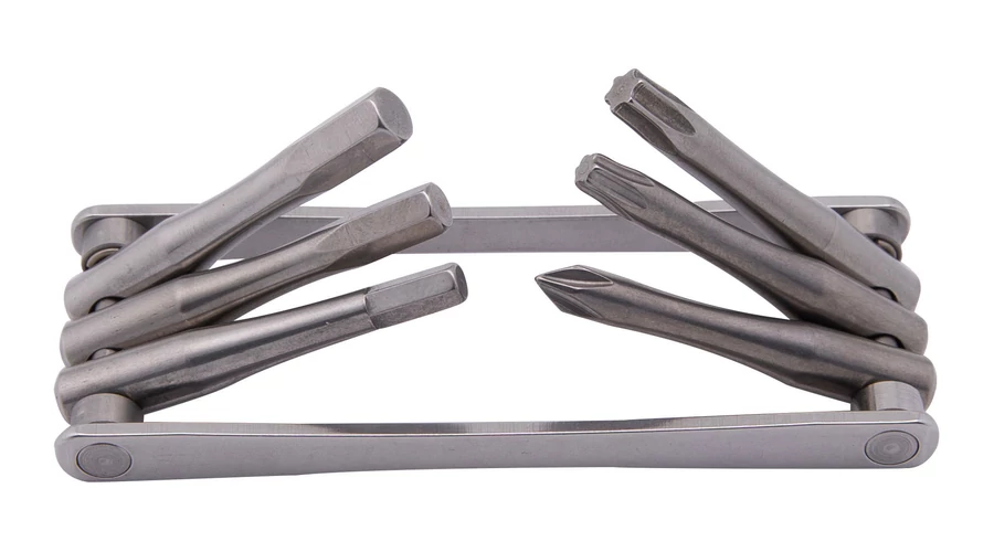 Klasszikusan kompakt: A CONTEC "TFR Fold 6" egy kompakt multiszerszám 90 x 34 mm-es méretekkel és mindössze 77 gramm tömeggel. A hat funkciós szerszám 4 mm-es, 5 mm-es és 6 mm-es imbuszkulcsokat, egy Phillips csavarhúzót és T25, T30 Torxkulcsokat tartalmaz. A biztonságos munkavégzés érdekében az egyes szerszámok 90°-ban és 270°-ban rögzülnek. Nagy szilárdságú és rozsdamentes acélból készült.
