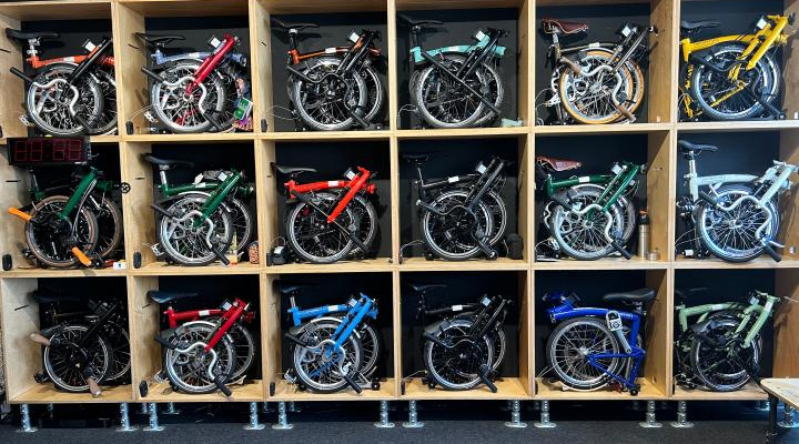 Összecsukható bringák várják gazdájukat a parkolóban