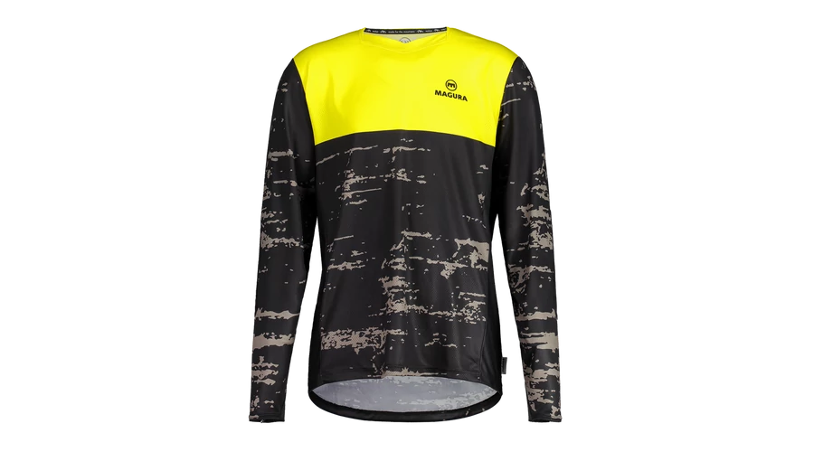 Laza szabású freeride mez, MAGURA sárga színben, finom camouflage design-al kombinálva.