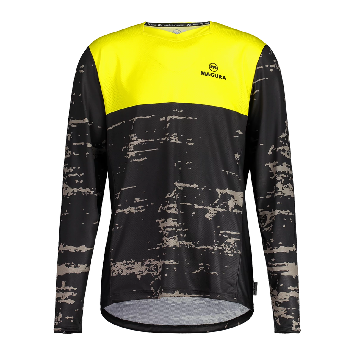Laza szabású freeride mez, MAGURA sárga színben, finom camouflage design-al kombinálva.