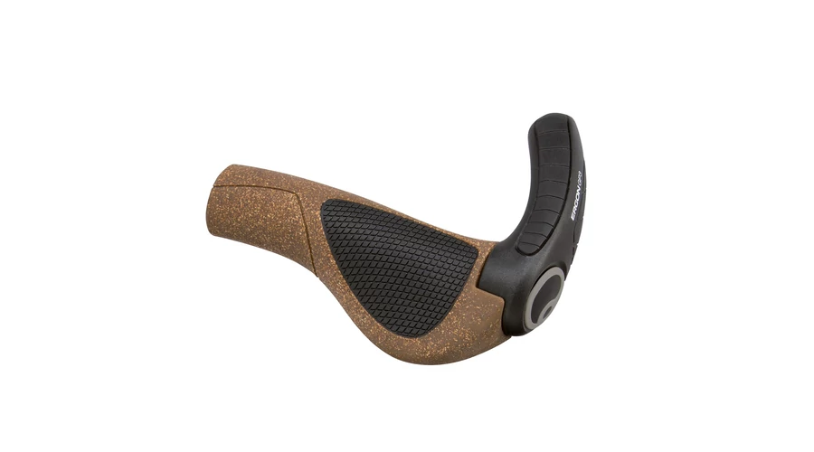 "Ergonómikus tenyértámaszos markolat trekking, MTB maraton és városi használatra. Ergon GP-3 (korábbi GR2) markolat, középhosszú (három ujjas) műanyag szarvval. Csúszásmentes gumi markolattest 40% parafával és puha tenyértámasz rész. A tenyértámasz megfelelően beállítva nem engedi megtörni a csuklót, ami megakadályozza a csuklóalagút-szindróma vagy az orsóideg-gyulladás kialakulását.
