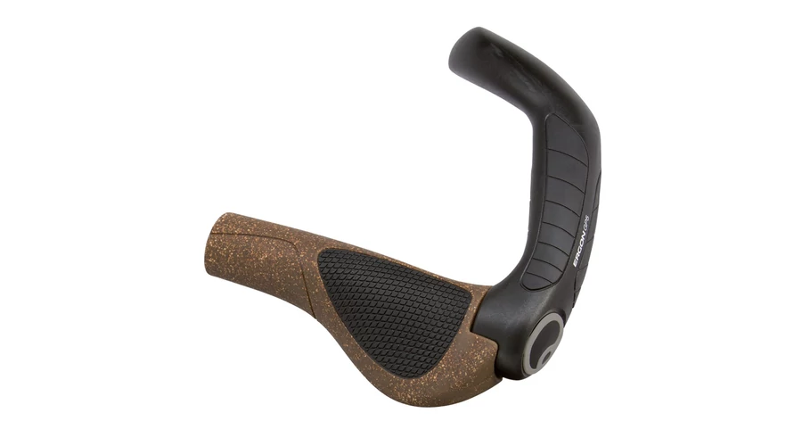 "Ergonómikus tenyértámaszos markolat trekking, MTB maraton és városi használatra. Ergon GP-5 (korábbi GC3) markolat, hosszú (öt ujjas) magnézium szarvval. Csúszásmentes gumi markolattest 40% parafával és puha tenyértámasz rész. A tenyértámasz megfelelően beállítva nem engedi megtörni a csuklót, ami megakadályozza a csuklóalagút-szindróma vagy az orsóideg-gyulladás kialakulását.