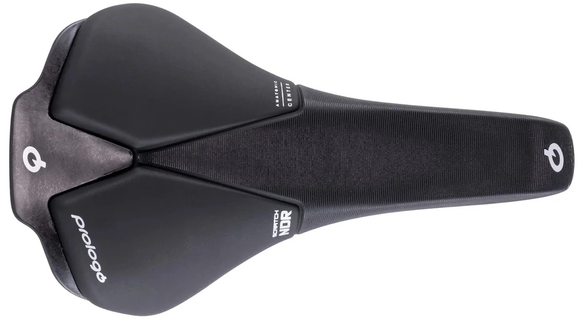 A Scratch NDR felülről nézve zárt, nincs rajta kivágás. Ez két okból jó: egyrészt kényelmesebb rajta az ülés, ha a nyereg orrán tekersz, másrészt a hátsó kerék nem veri fel a sarat közvetlenül a nadrágod alá. A trükk a borítás alatt van: a karbon vázon egy stratégiailag elhelyezett nyílás található (Active Base System), ami segít elnyelni a nyomást, így hosszú távon is komfortos marad.