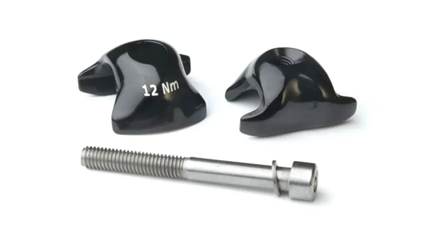 Nyeregsínrögzítő külső elemei a WCS Alloy 1 csavaros nyeregszárak különböző nyeregsínméretekhez való igazításához.