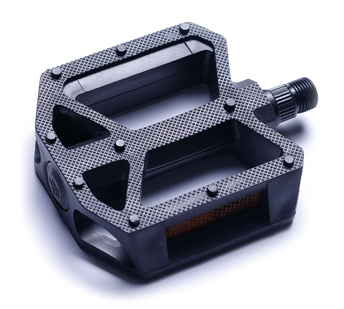 Műanyag BMX pedál • Tengely: 9/16", golyóscsapágyas • Méret: 110×105×27.6 mm • Tömeg: 342 g