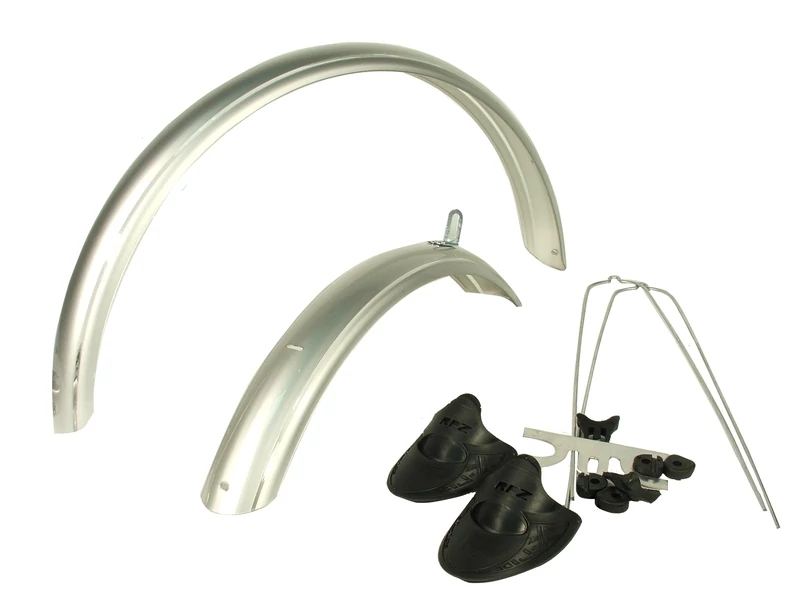 Városi kerékpárra pálcás bicikli sárvédőt 26” és 28”-os mérethez is tudunk adni. Ezeket pálcás rögzítéssel lehet a vázon és a villán található furatokba felhelyezni. Fém és plasztik anyagból készülnek és stabilak maradnak a pálcák miatt. Fekete, ezüst és króm színben választható.