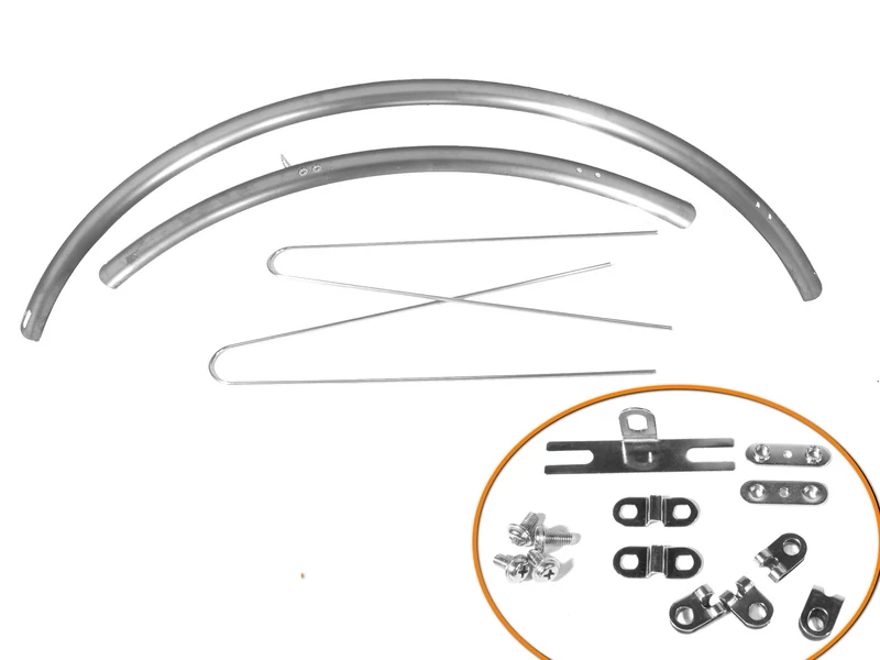 Városi kerékpárra pálcás bicikli sárvédőt 26” és 28”-os mérethez is tudunk adni. Ezeket pálcás rögzítéssel lehet a vázon és a villán található furatokba felhelyezni. Fém és plasztik anyagból készülnek és stabilak maradnak a pálcák miatt. Fekete, ezüst és króm színben választható.