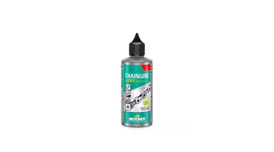 Biológiailag lebomló, full szintetikus, olaj bázisú, speciálisan száraz, poros körülményekhez kifejlesztett, környezetbarát kenőanyag. Használata megakadályozza a por és egyéb szennyezőanyagok megtapadását a láncon és egyéb alkatrészeken, bowdeneken, lassítva ezzel a kopást. 100ml-es csepegtetős kiszerelés, visszazárható kupakkal.